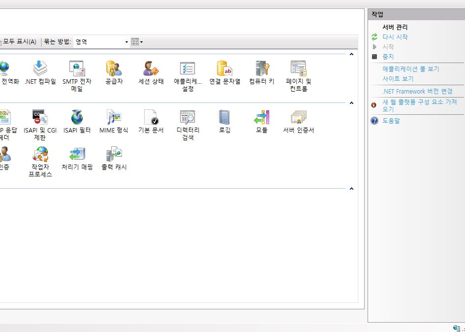 저는 웹서버로 IIS를 쓰고 있습니다. 오른쪽에 다시 시작 버튼을 눌러주세요.